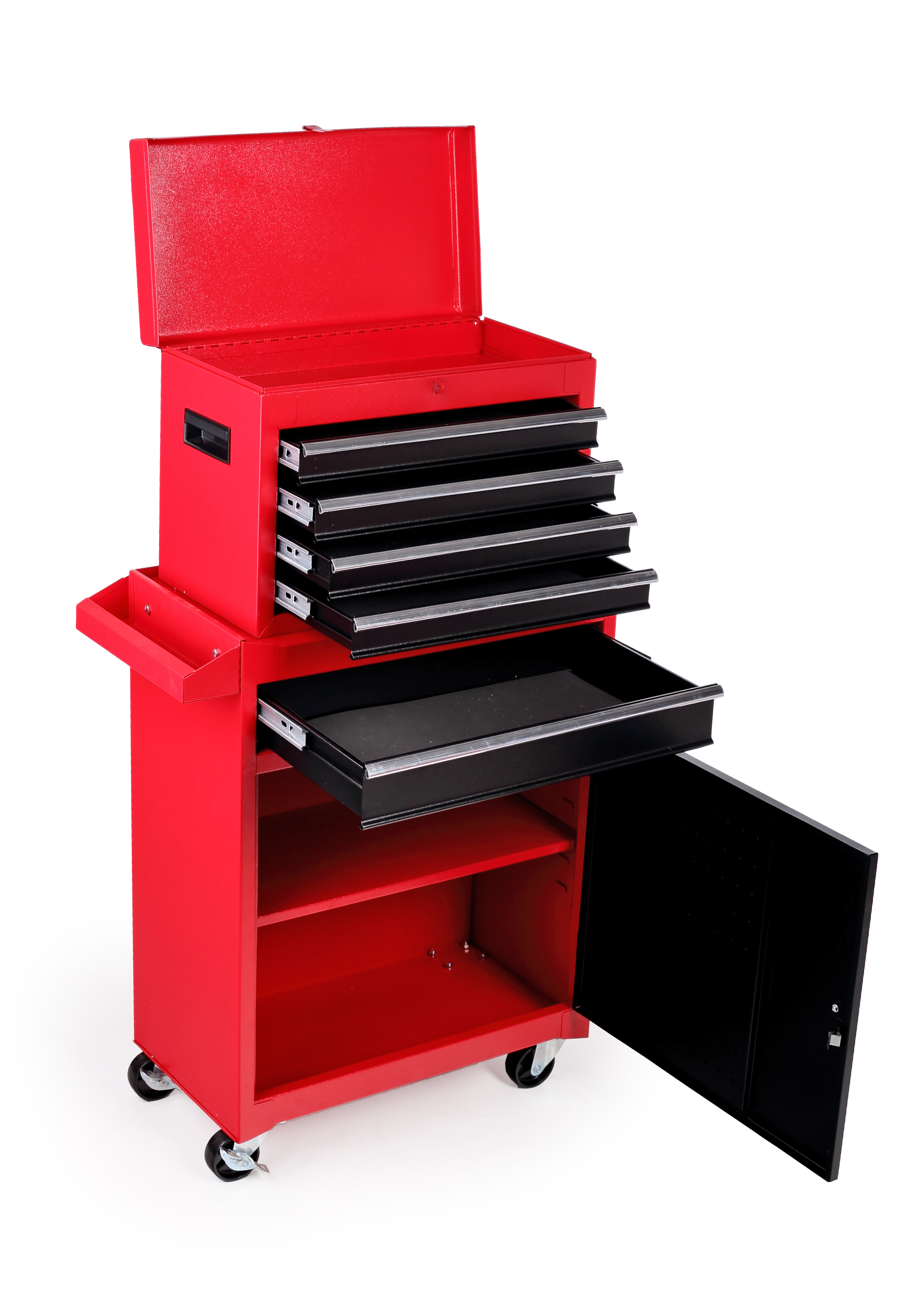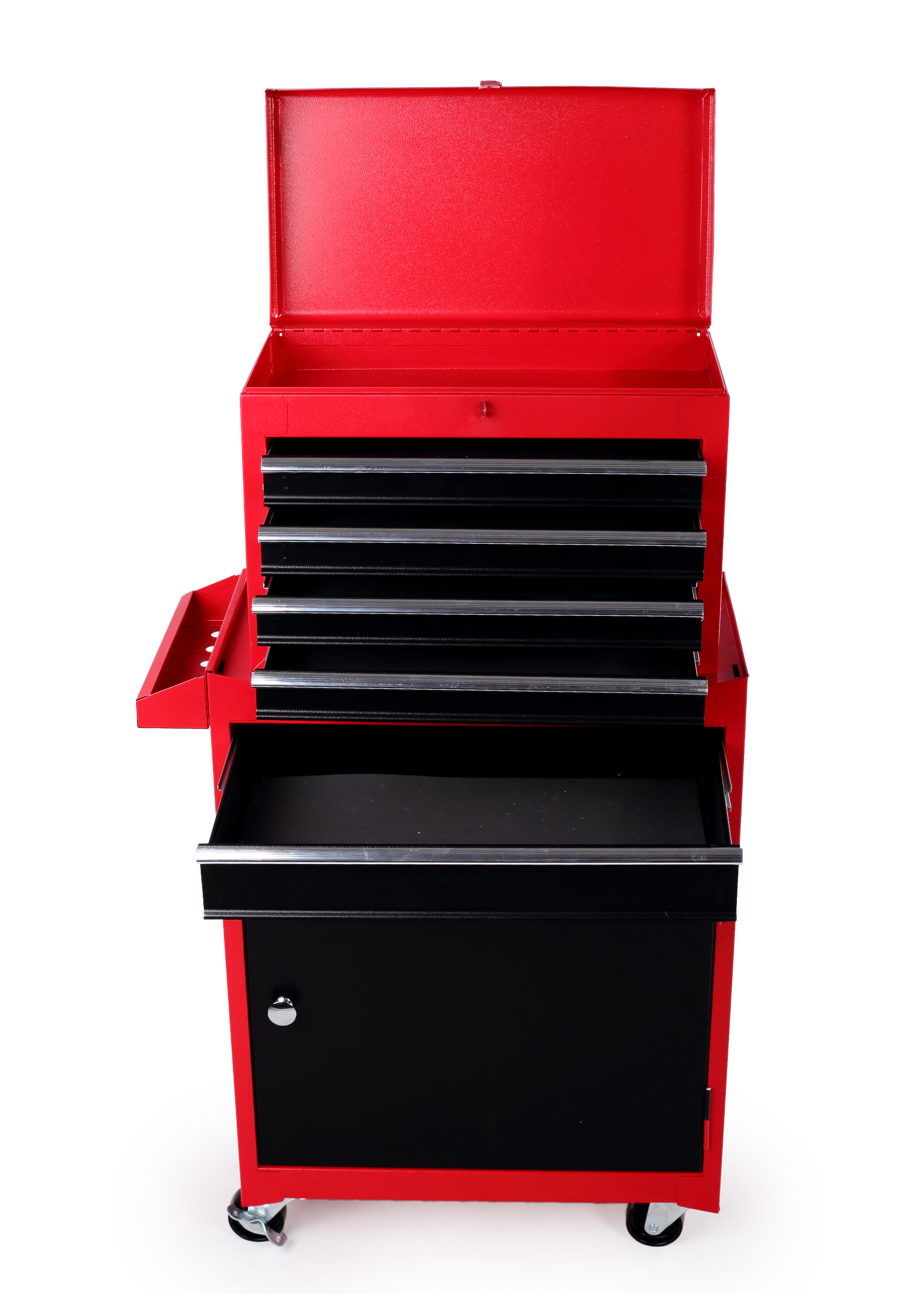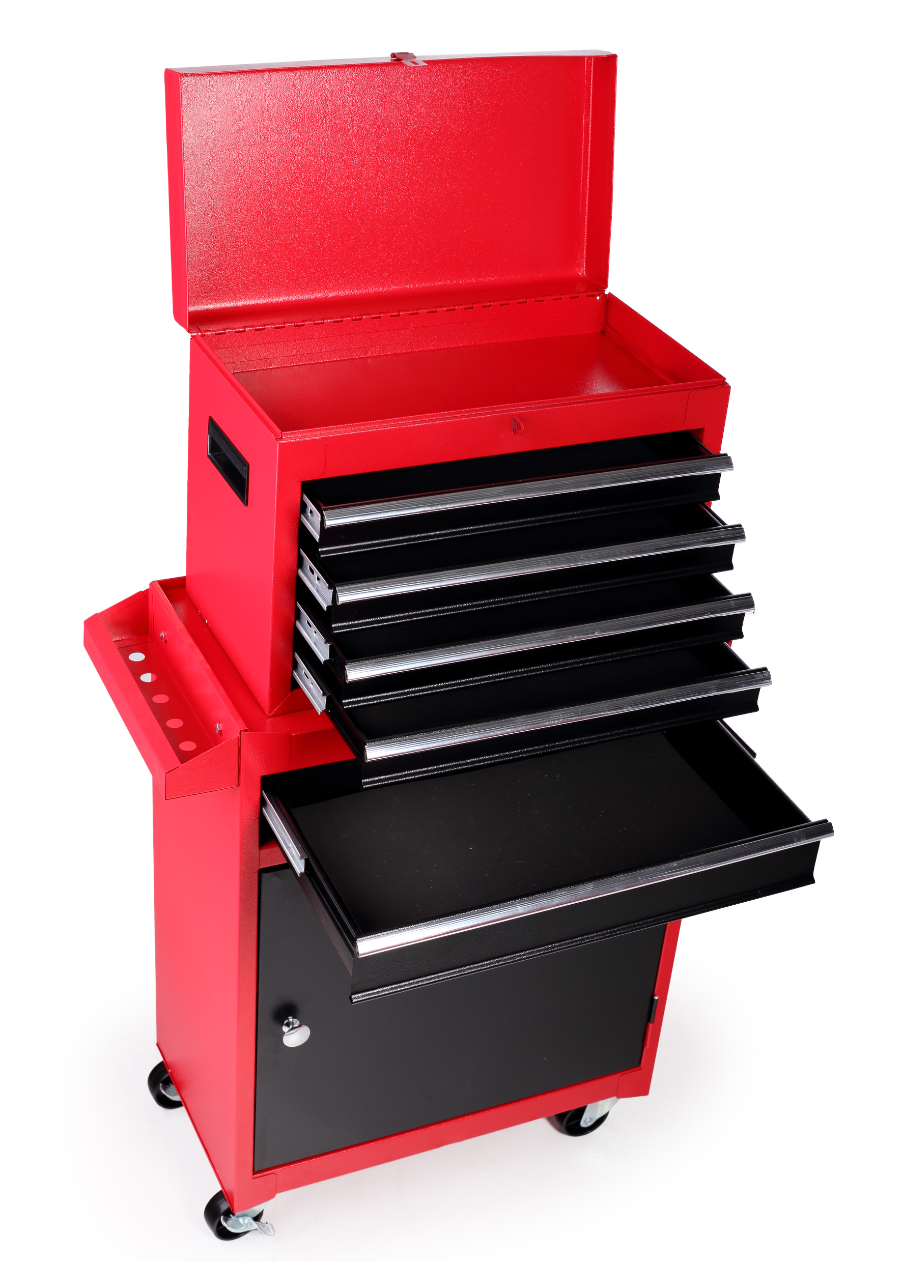 2 Częściowy wózek narzędziowy, szafka warsztatowa 5 szuflad oraz 2 przegrody, kolor czerwono-czarny